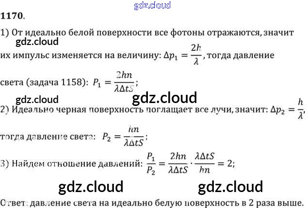 Ответ на задание 1170 Задачник Физика за 10, 11 (десятый, одиннадцатый) класс Рымкевич УМК 2013