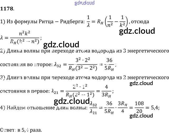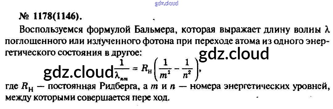 Ответ на задание 1178 Задачник Физика за 10, 11 (десятый, одиннадцатый) класс Рымкевич УМК 2013