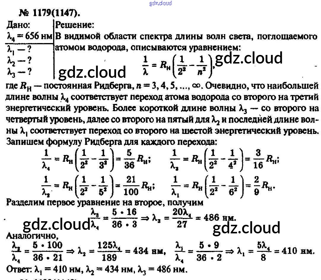 Ответ на задание 1179 Задачник Физика за 10, 11 (десятый, одиннадцатый) класс Рымкевич УМК 2013