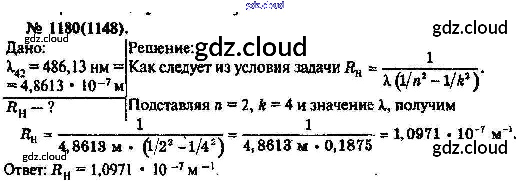 Ответ на задание 1180 Задачник Физика за 10, 11 (десятый, одиннадцатый) класс Рымкевич УМК 2013