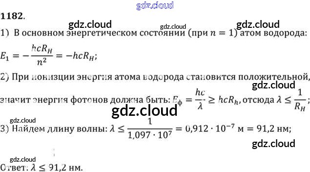 Ответ на задание 1182 Задачник Физика за 10, 11 (десятый, одиннадцатый) класс Рымкевич УМК 2013