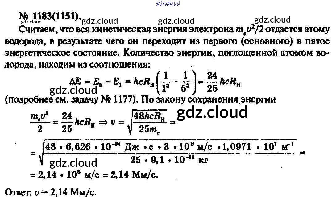 Ответ на задание 1183 Задачник Физика за 10, 11 (десятый, одиннадцатый) класс Рымкевич УМК 2013