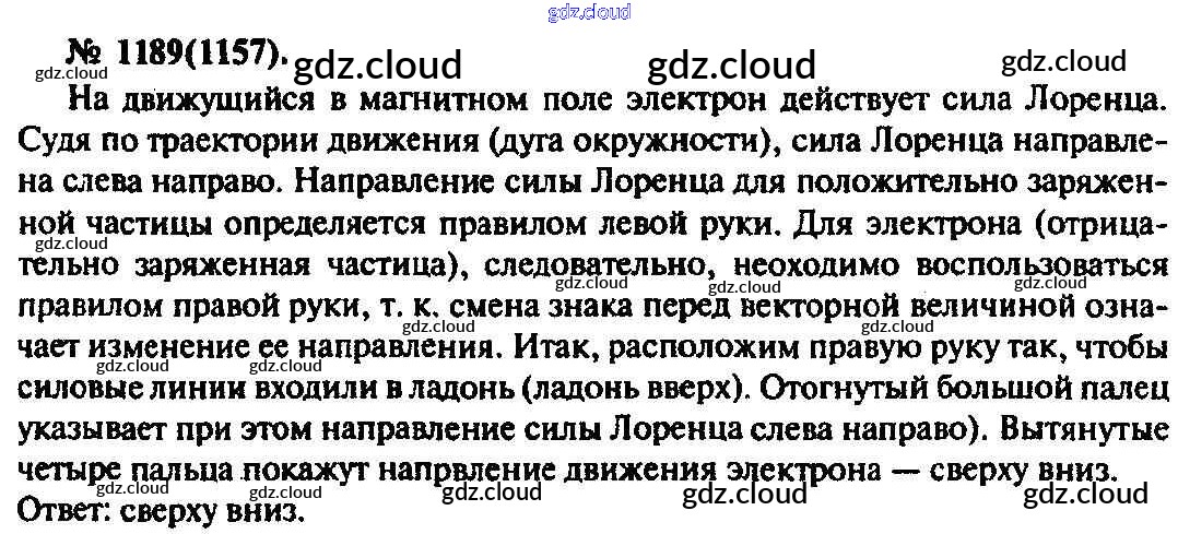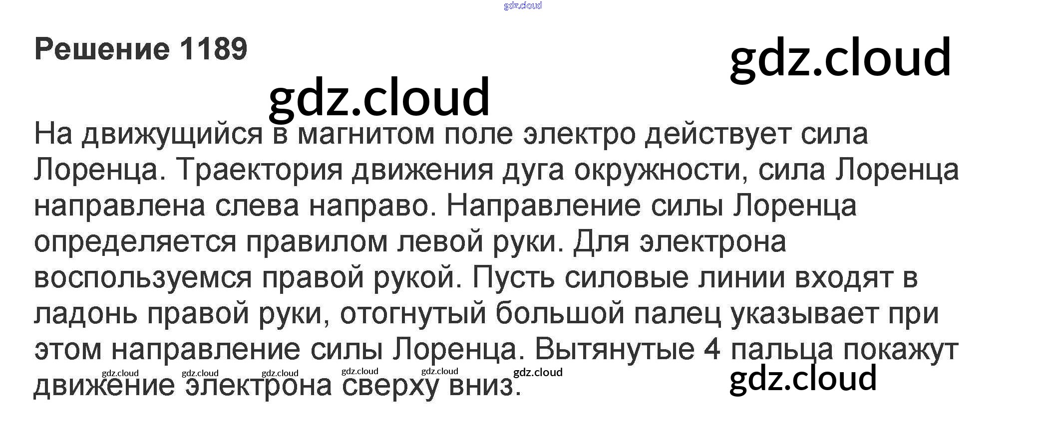 Ответ на задание 1189 Задачник Физика за 10, 11 (десятый, одиннадцатый) класс Рымкевич УМК 2013