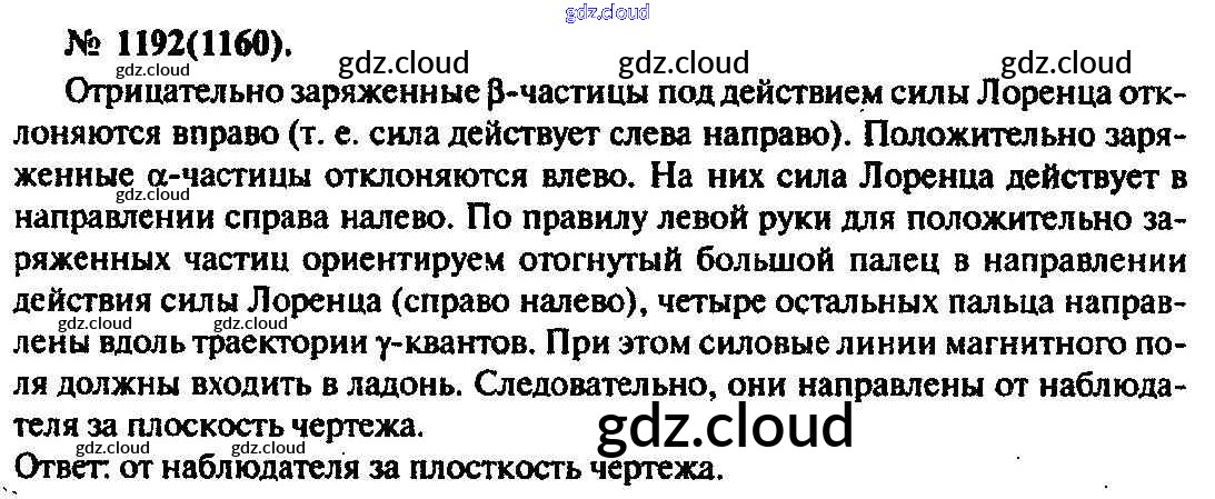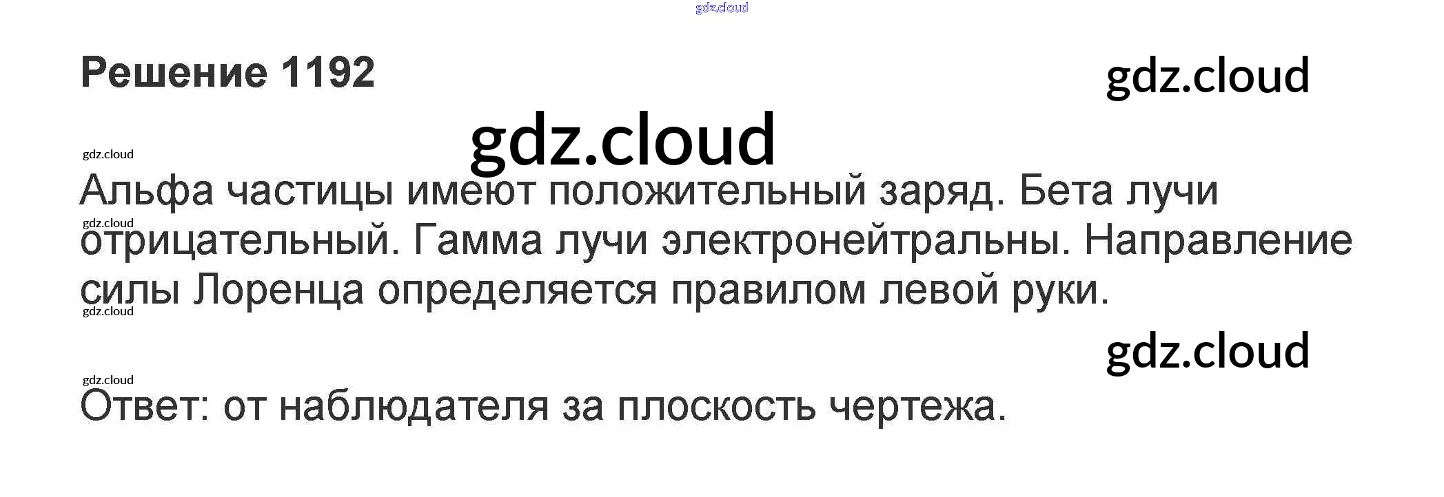 Ответ на задание 1192 Задачник Физика за 10, 11 (десятый, одиннадцатый) класс Рымкевич УМК 2013
