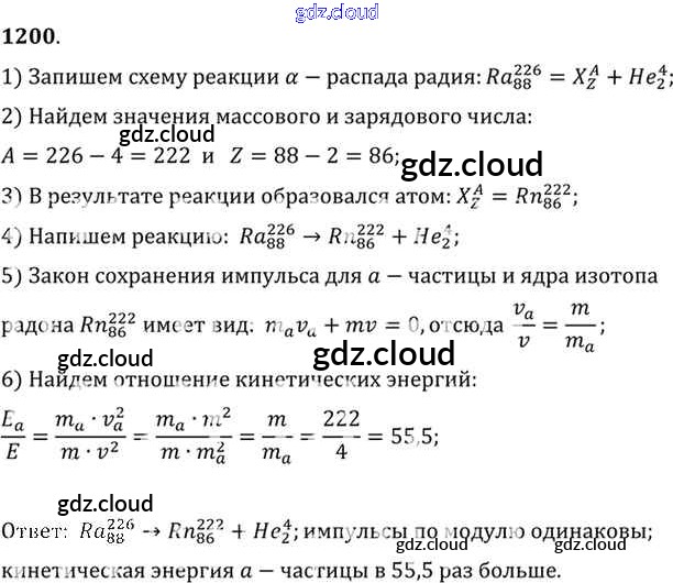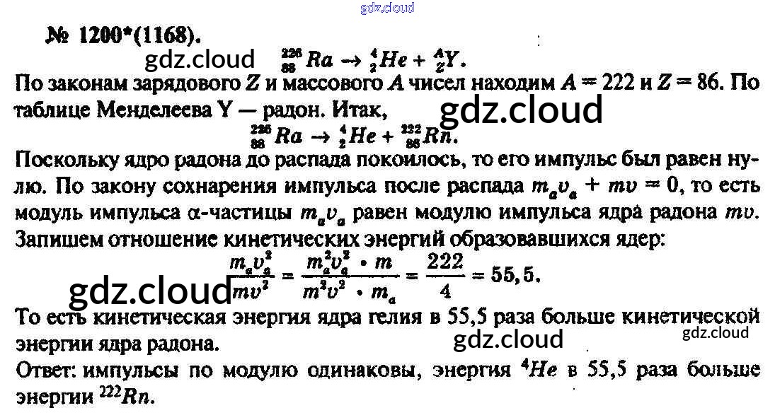 Ответ на задание 1200 Задачник Физика за 10, 11 (десятый, одиннадцатый) класс Рымкевич УМК 2013