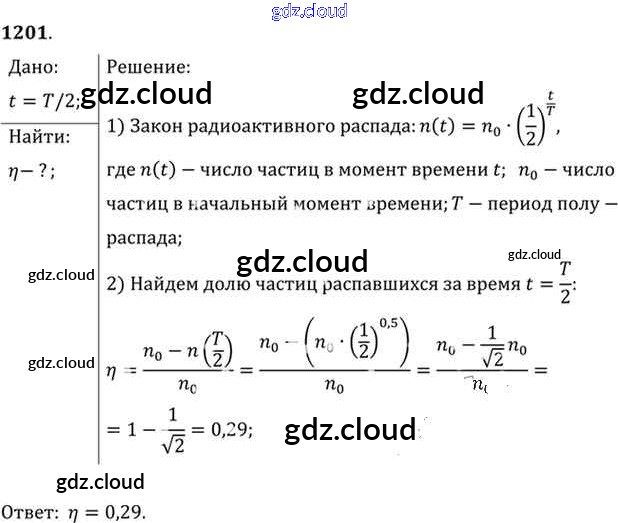 Ответ на задание 1201 Задачник Физика за 10, 11 (десятый, одиннадцатый) класс Рымкевич УМК 2013