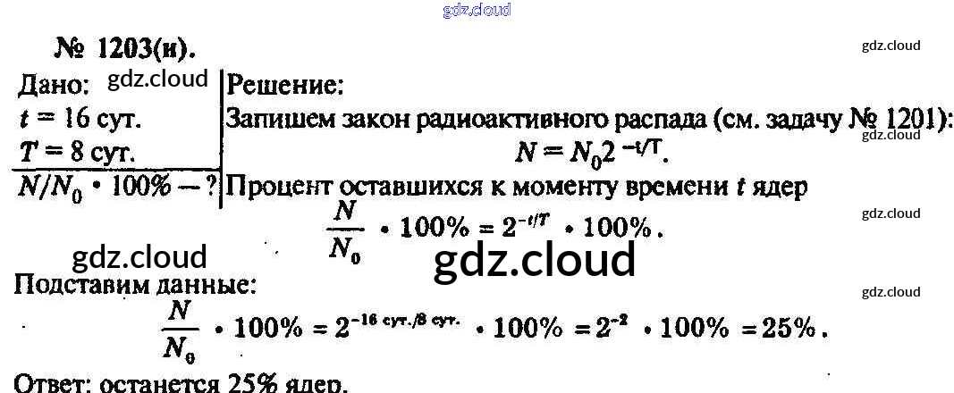 Ответ на задание 1203 Задачник Физика за 10, 11 (десятый, одиннадцатый) класс Рымкевич УМК 2013