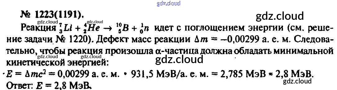Ответ на задание 1223 Задачник Физика за 10, 11 (десятый, одиннадцатый) класс Рымкевич УМК 2013