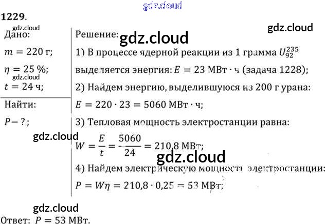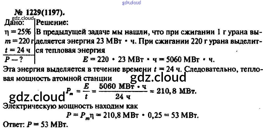 Ответ на задание 1229 Задачник Физика за 10, 11 (десятый, одиннадцатый) класс Рымкевич УМК 2013