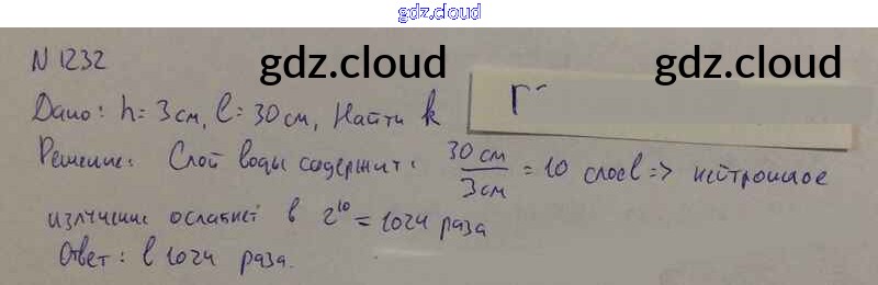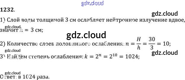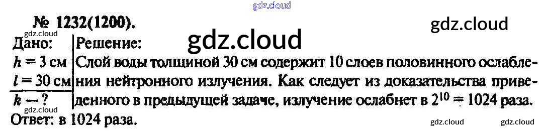 Ответ на задание 1232 Задачник Физика за 10, 11 (десятый, одиннадцатый) класс Рымкевич УМК 2013