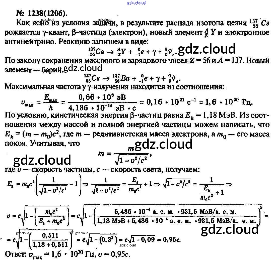 Ответ на задание 1238 Задачник Физика за 10, 11 (десятый, одиннадцатый) класс Рымкевич УМК 2013
