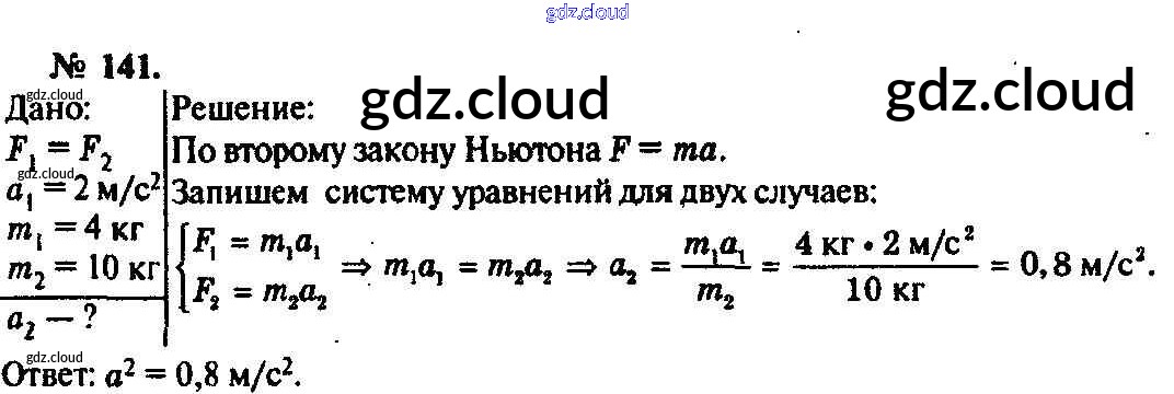 Ответ на задание 141 Задачник Физика за 10, 11 (десятый, одиннадцатый) класс Рымкевич УМК 2013