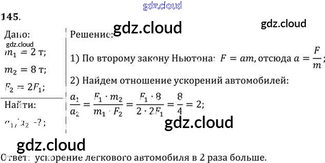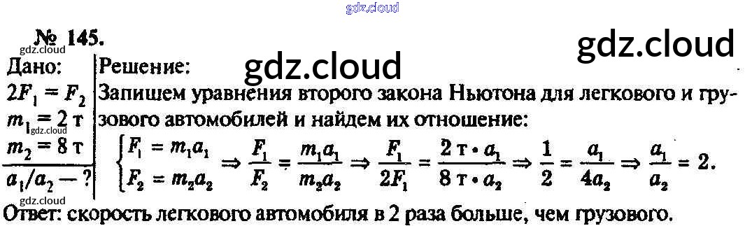 Ответ на задание 145 Задачник Физика за 10, 11 (десятый, одиннадцатый) класс Рымкевич УМК 2013