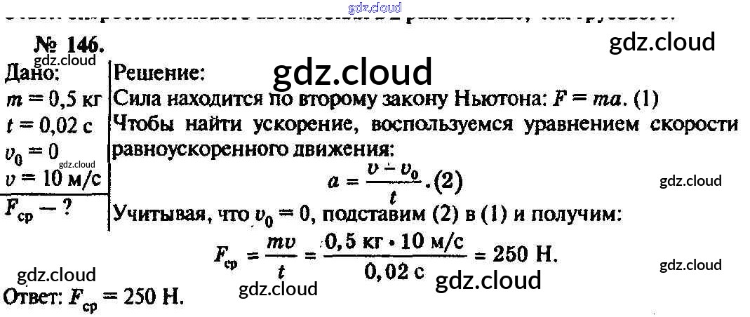 Ответ на задание 146 Задачник Физика за 10, 11 (десятый, одиннадцатый) класс Рымкевич УМК 2013