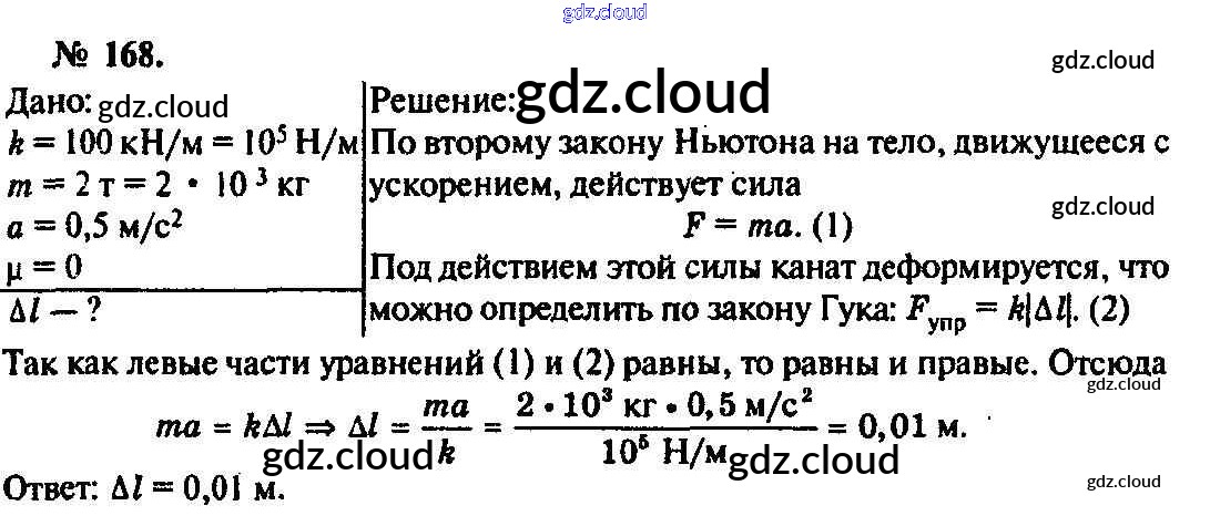 Ответ на задание 168 Задачник Физика за 10, 11 (десятый, одиннадцатый) класс Рымкевич УМК 2013