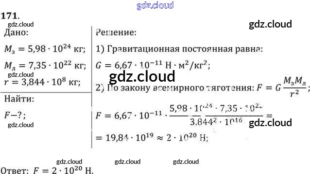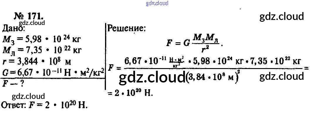 Ответ на задание 171 Задачник Физика за 10, 11 (десятый, одиннадцатый) класс Рымкевич УМК 2013