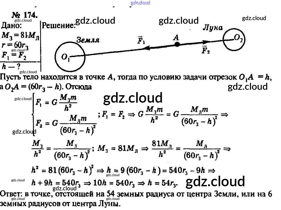 Ответ на задание 174 Задачник Физика за 10, 11 (десятый, одиннадцатый) класс Рымкевич УМК 2013