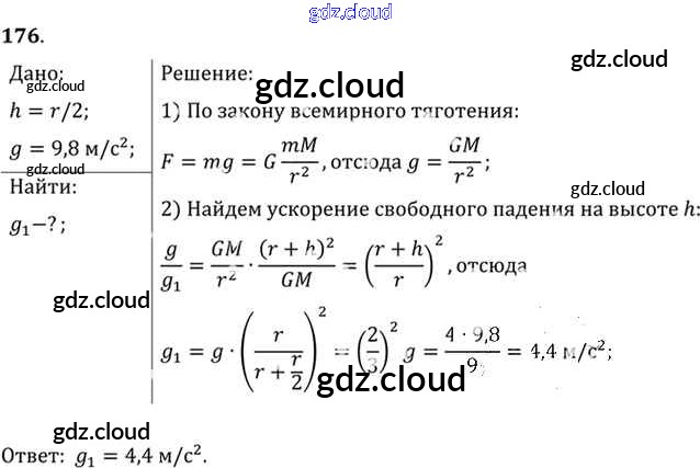 Ответ на задание 176 Задачник Физика за 10, 11 (десятый, одиннадцатый) класс Рымкевич УМК 2013
