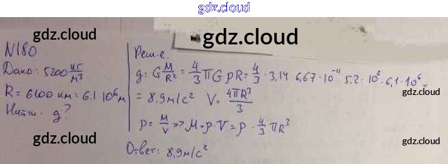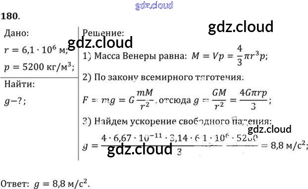 Ответ на задание 180 Задачник Физика за 10, 11 (десятый, одиннадцатый) класс Рымкевич УМК 2013