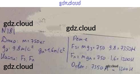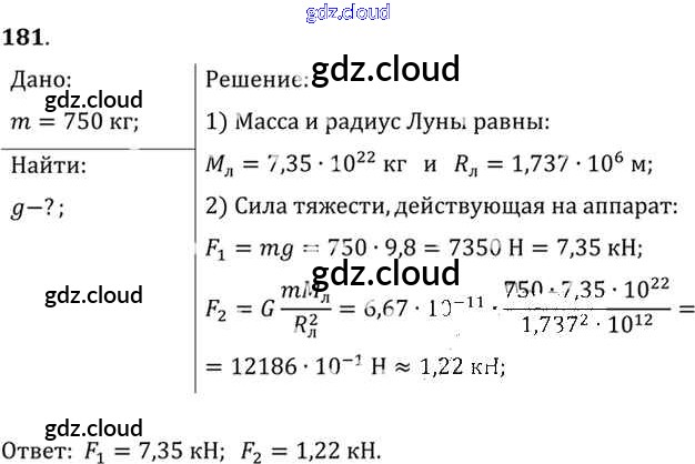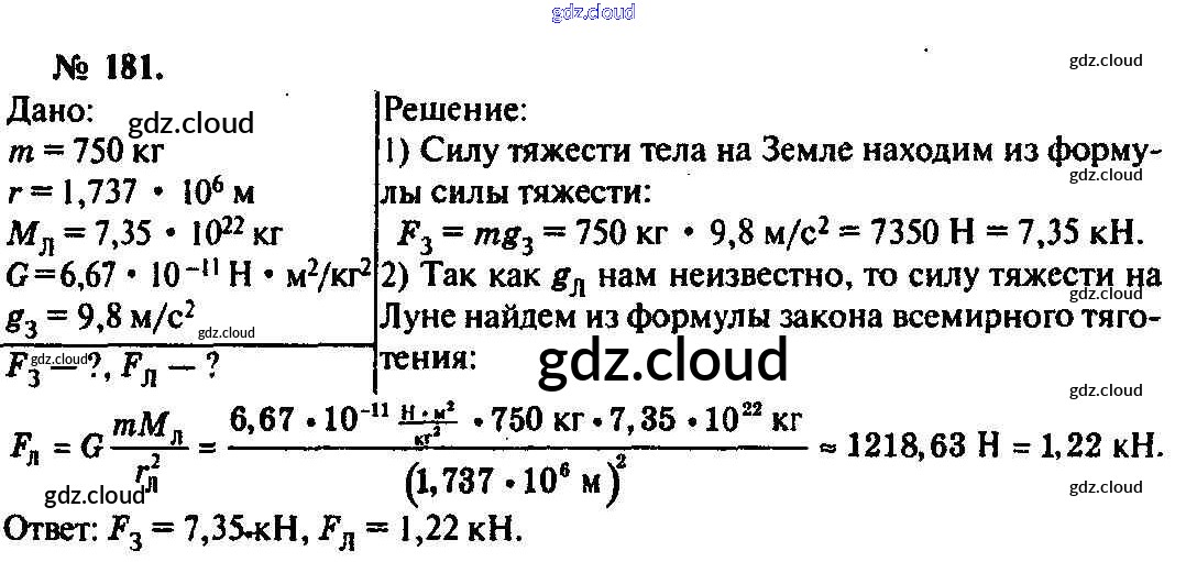 Ответ на задание 181 Задачник Физика за 10, 11 (десятый, одиннадцатый) класс Рымкевич УМК 2013
