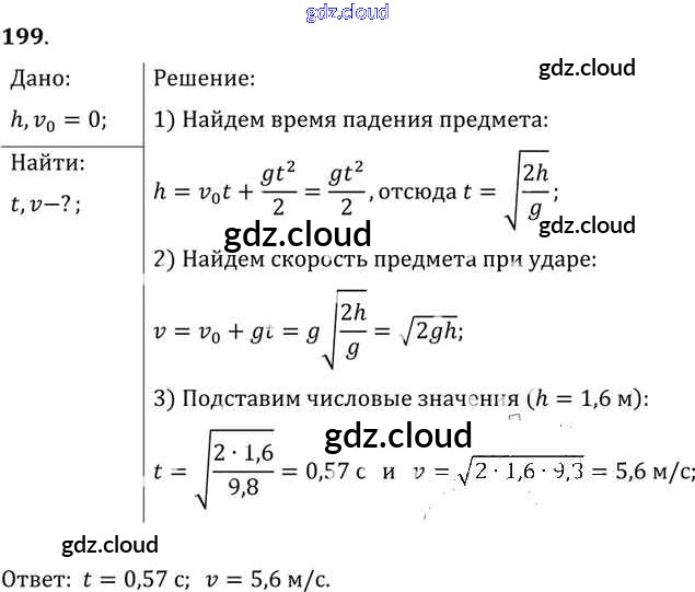 Ответ на задание 199 Задачник Физика за 10, 11 (десятый, одиннадцатый) класс Рымкевич УМК 2013