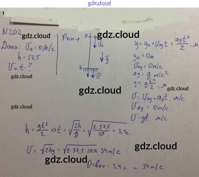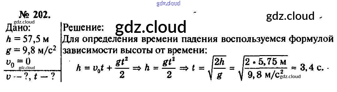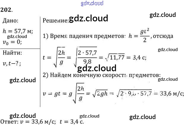 Ответ на задание 202 Задачник Физика за 10, 11 (десятый, одиннадцатый) класс Рымкевич УМК 2013