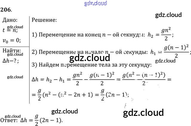 Ответ на задание 206 Задачник Физика за 10, 11 (десятый, одиннадцатый) класс Рымкевич УМК 2013