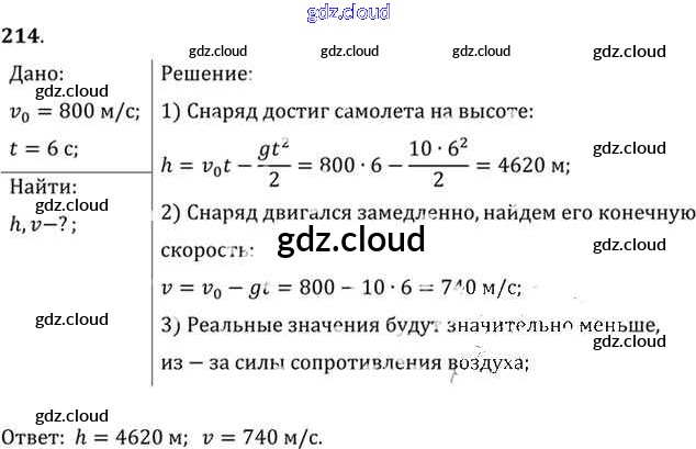 Ответ на задание 214 Задачник Физика за 10, 11 (десятый, одиннадцатый) класс Рымкевич УМК 2013