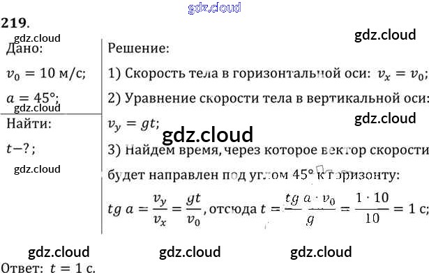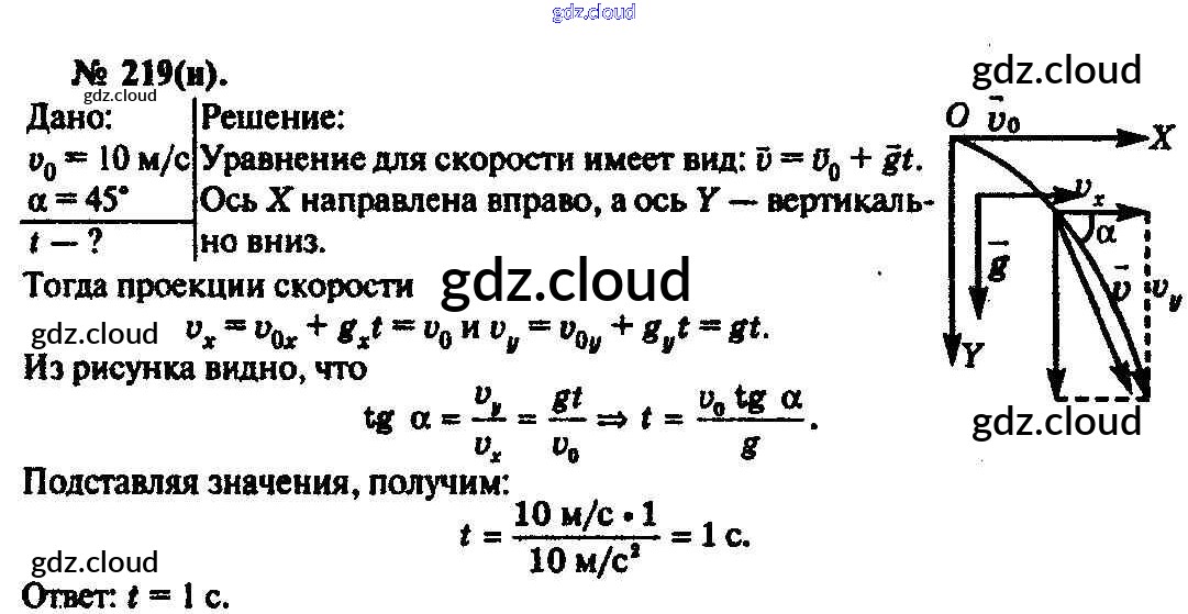 Ответ на задание 219 Задачник Физика за 10, 11 (десятый, одиннадцатый) класс Рымкевич УМК 2013