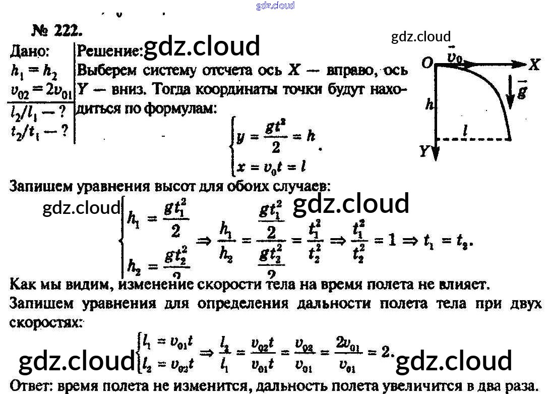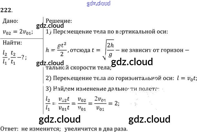 Ответ на задание 222 Задачник Физика за 10, 11 (десятый, одиннадцатый) класс Рымкевич УМК 2013