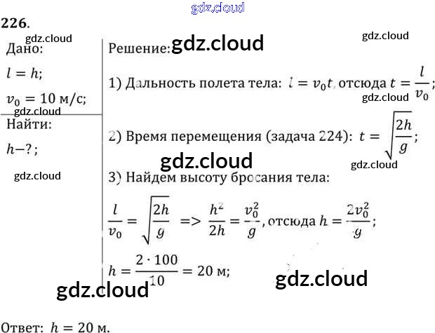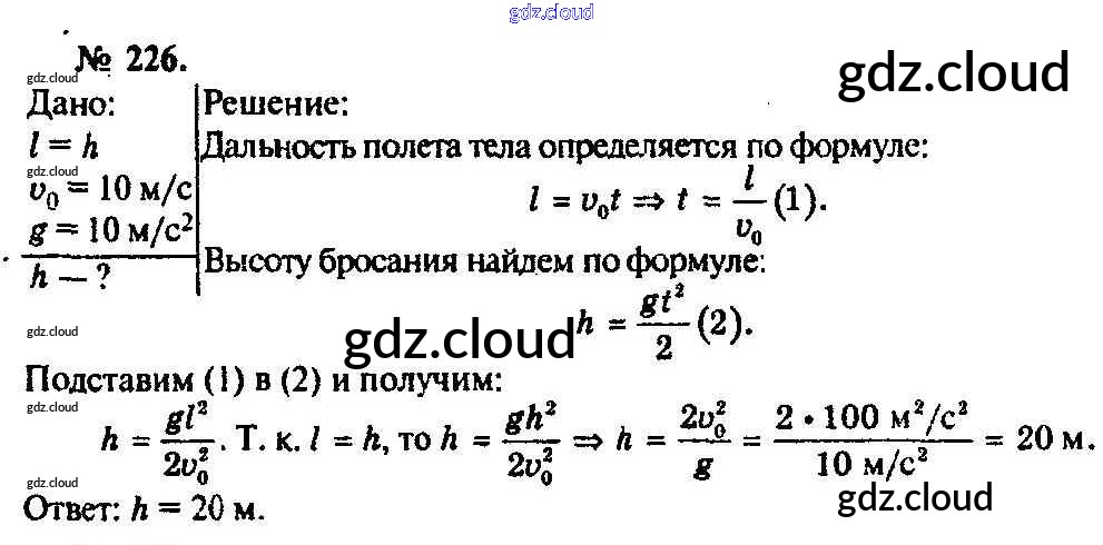 Ответ на задание 226 Задачник Физика за 10, 11 (десятый, одиннадцатый) класс Рымкевич УМК 2013