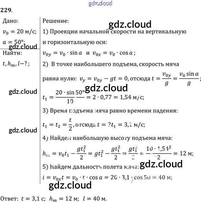 Ответ на задание 229 Задачник Физика за 10, 11 (десятый, одиннадцатый) класс Рымкевич УМК 2013