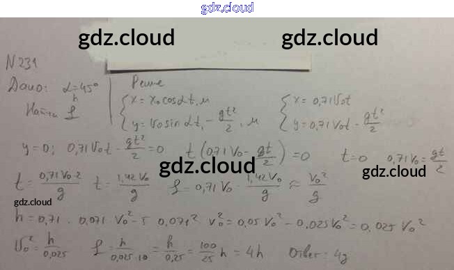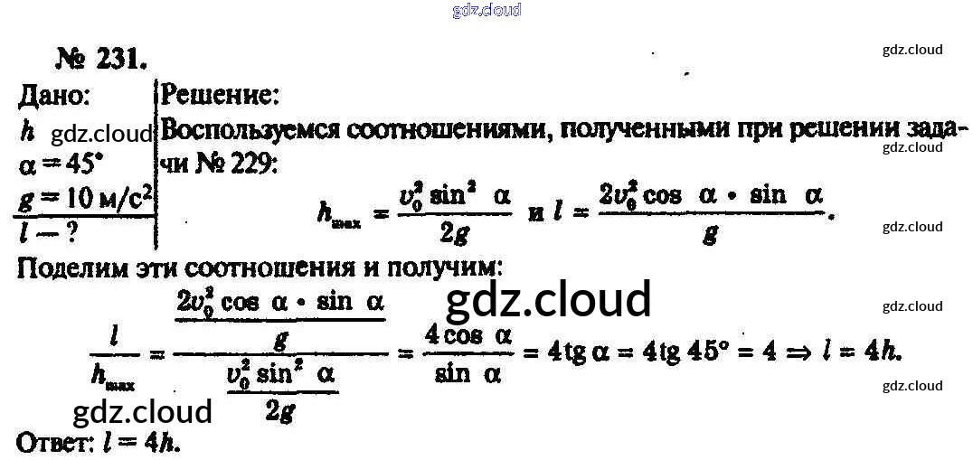 Ответ на задание 231 Задачник Физика за 10, 11 (десятый, одиннадцатый) класс Рымкевич УМК 2013
