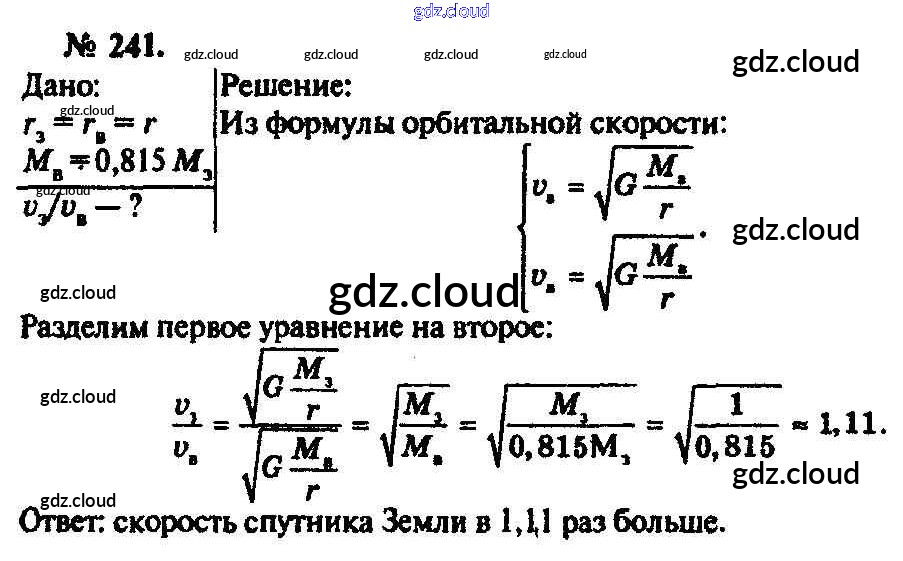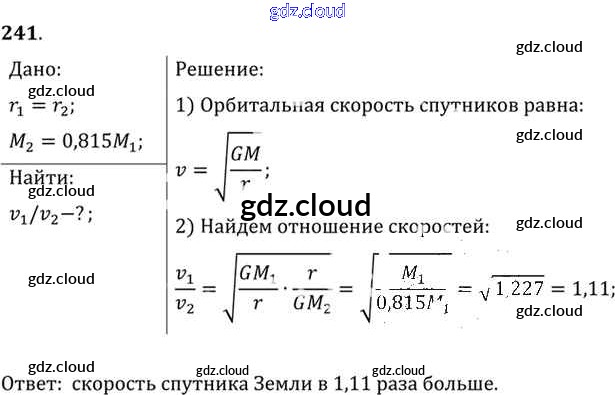 Ответ на задание 241 Задачник Физика за 10, 11 (десятый, одиннадцатый) класс Рымкевич УМК 2013