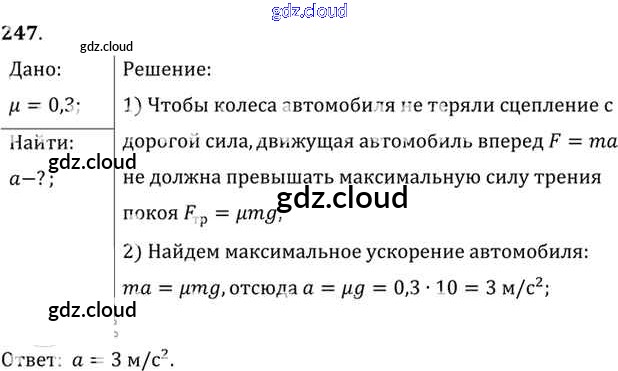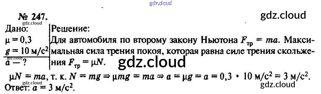 Ответ на задание 247 Задачник Физика за 10, 11 (десятый, одиннадцатый) класс Рымкевич УМК 2013