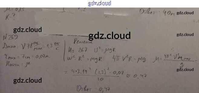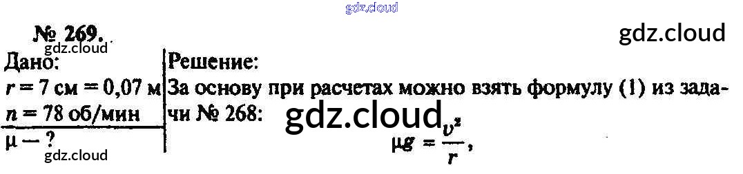 Ответ на задание 269 Задачник Физика за 10, 11 (десятый, одиннадцатый) класс Рымкевич УМК 2013