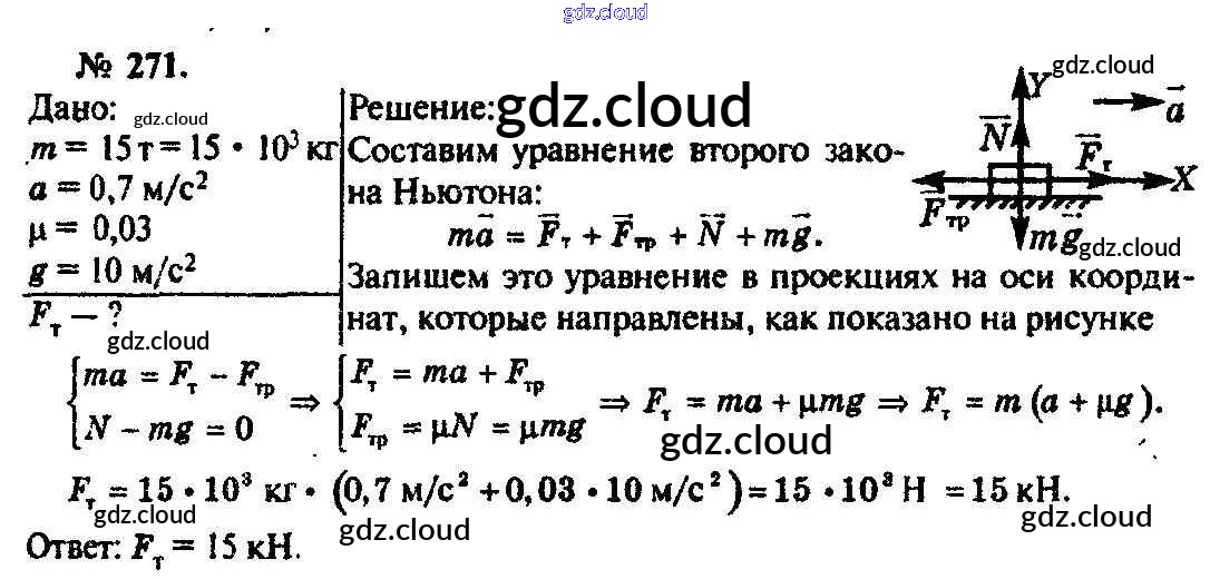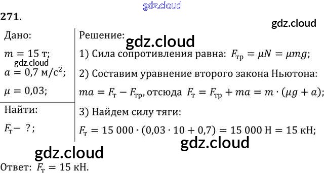 Ответ на задание 271 Задачник Физика за 10, 11 (десятый, одиннадцатый) класс Рымкевич УМК 2013