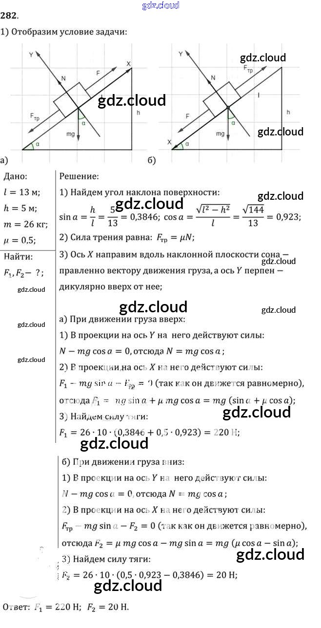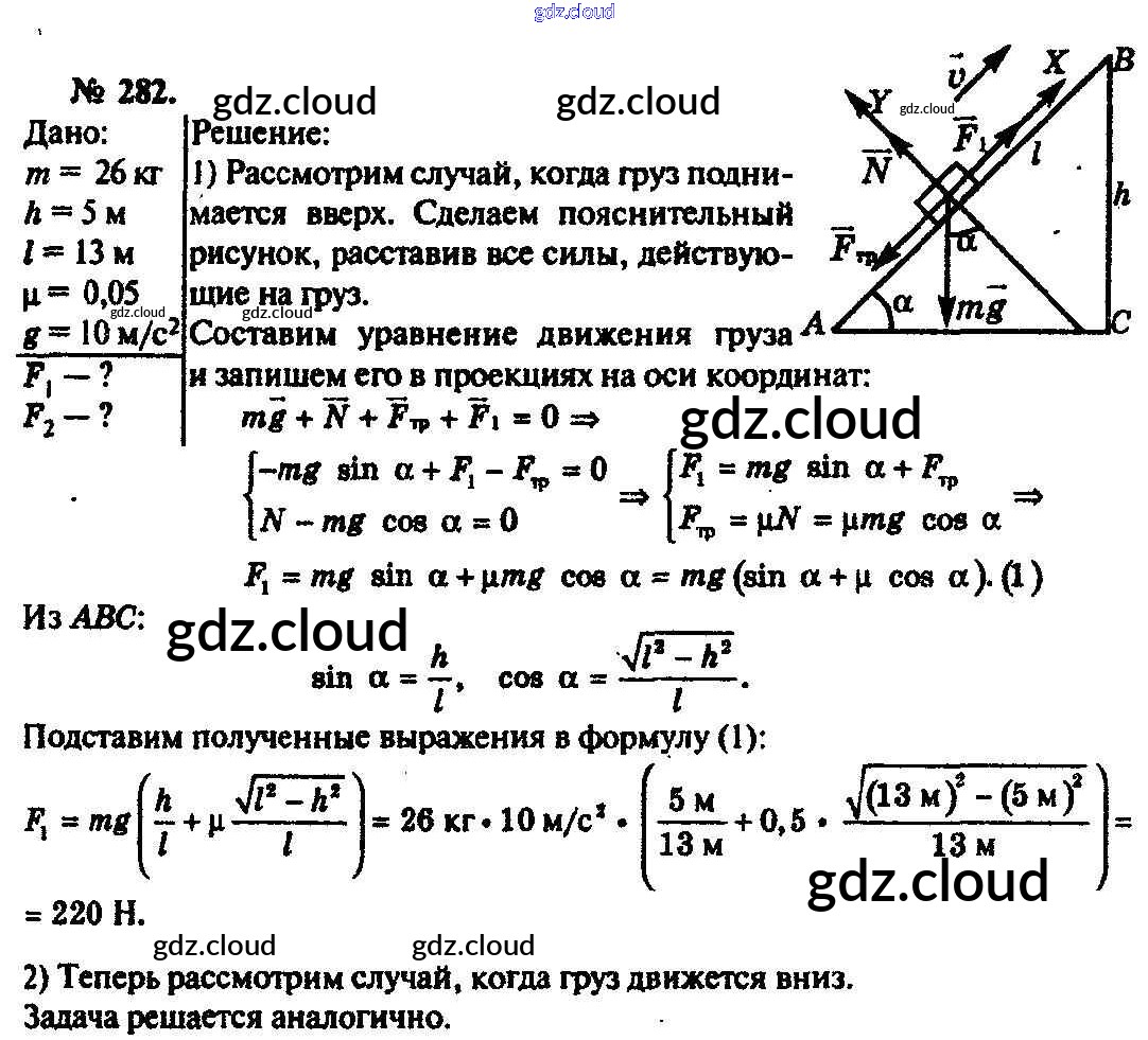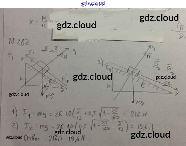 Ответ на задание 282 Задачник Физика за 10, 11 (десятый, одиннадцатый) класс Рымкевич УМК 2013