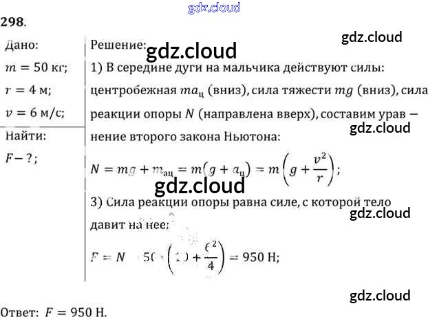 Ответ на задание 298 Задачник Физика за 10, 11 (десятый, одиннадцатый) класс Рымкевич УМК 2013