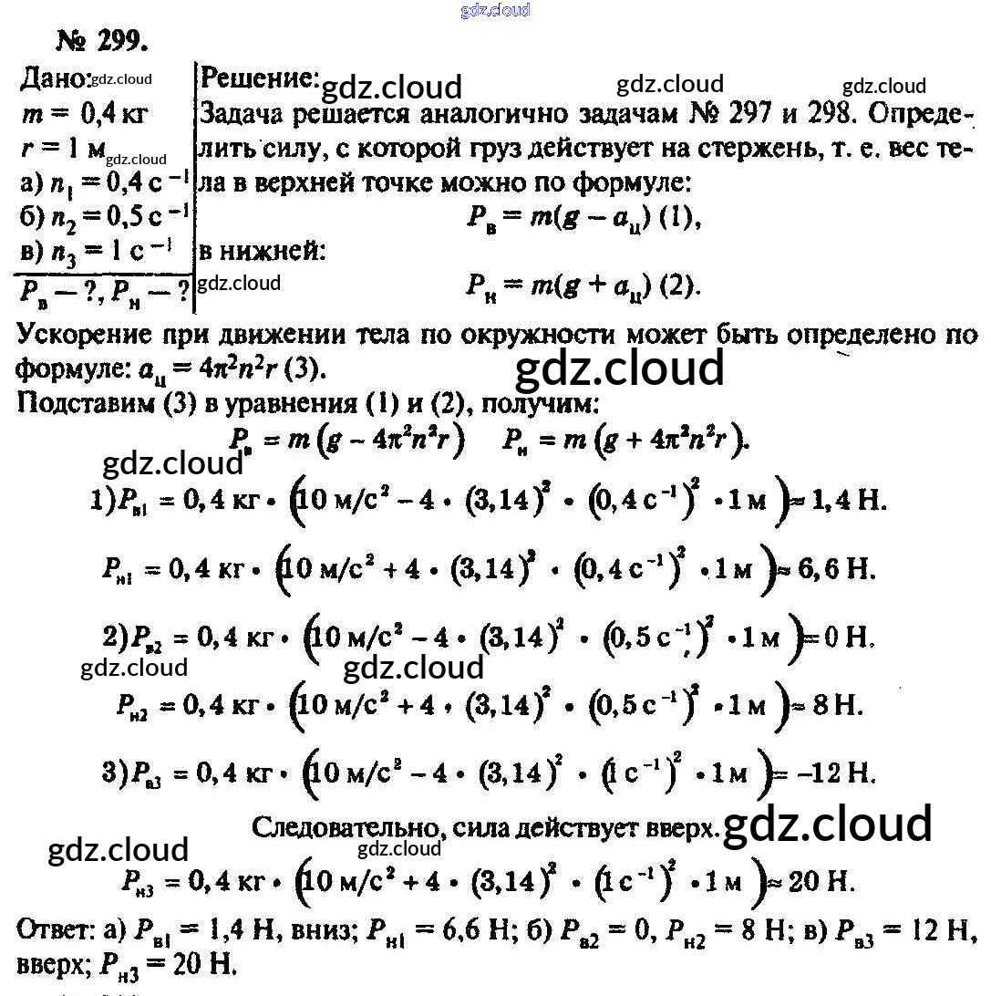 Ответ на задание 299 Задачник Физика за 10, 11 (десятый, одиннадцатый) класс Рымкевич УМК 2013