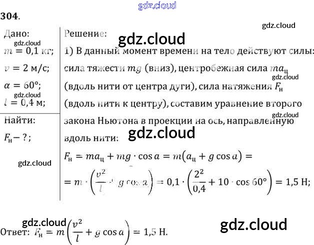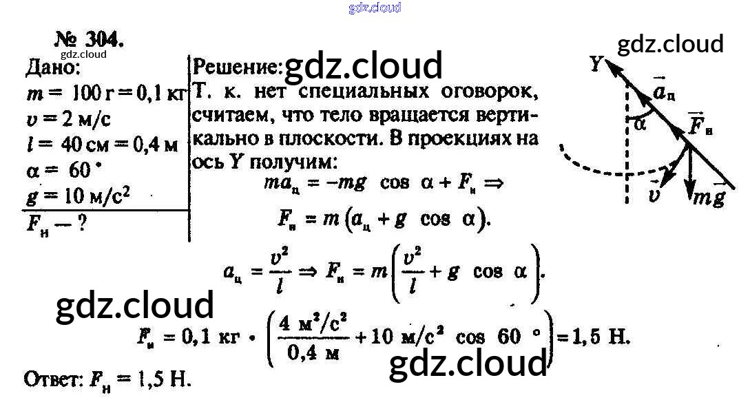 Ответ на задание 304 Задачник Физика за 10, 11 (десятый, одиннадцатый) класс Рымкевич УМК 2013