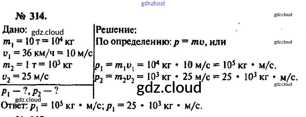 Ответ на задание 314 Задачник Физика за 10, 11 (десятый, одиннадцатый) класс Рымкевич УМК 2013
