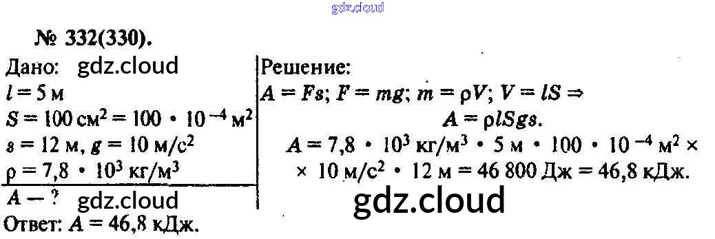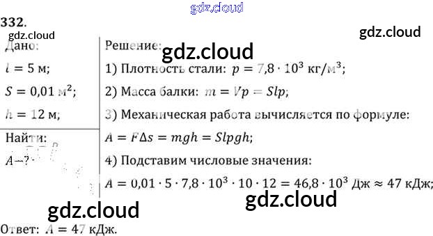 Ответ на задание 332 Задачник Физика за 10, 11 (десятый, одиннадцатый) класс Рымкевич УМК 2013