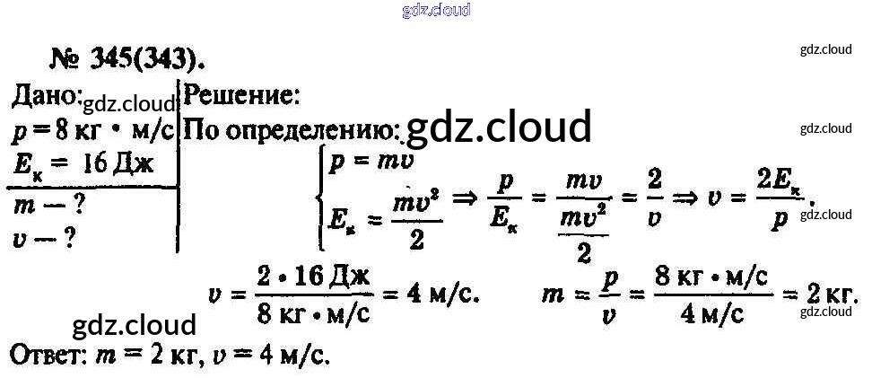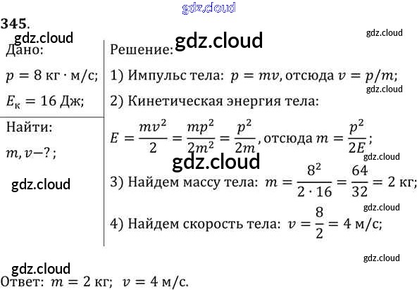 Ответ на задание 345 Задачник Физика за 10, 11 (десятый, одиннадцатый) класс Рымкевич УМК 2013