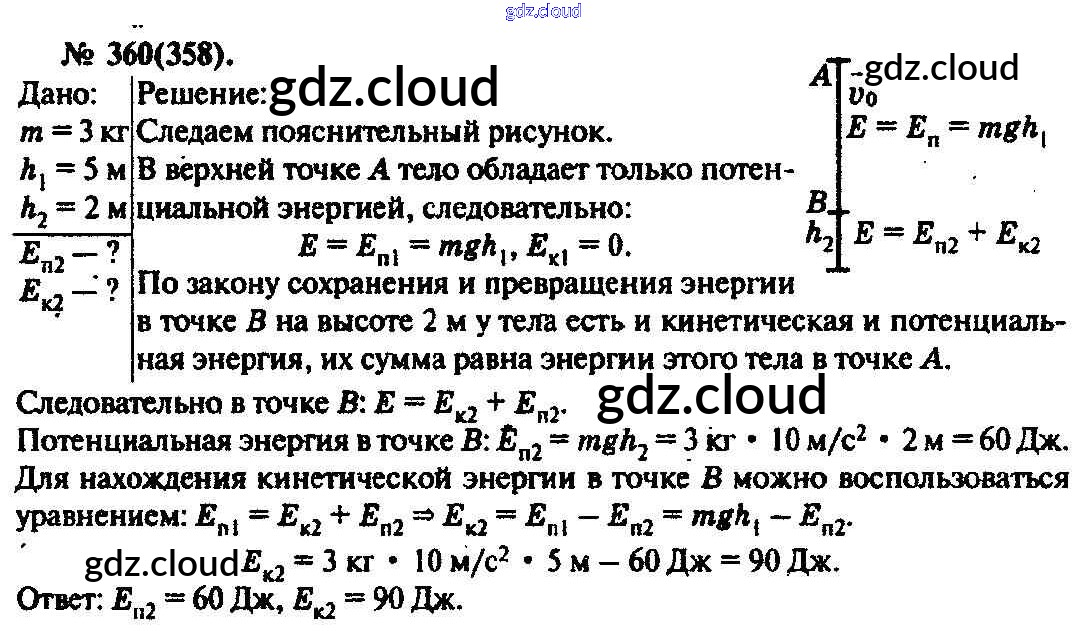 Ответ на задание 360 Задачник Физика за 10, 11 (десятый, одиннадцатый) класс Рымкевич УМК 2013
