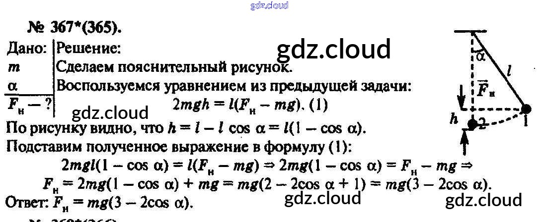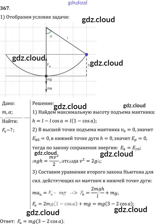 Ответ на задание 367 Задачник Физика за 10, 11 (десятый, одиннадцатый) класс Рымкевич УМК 2013