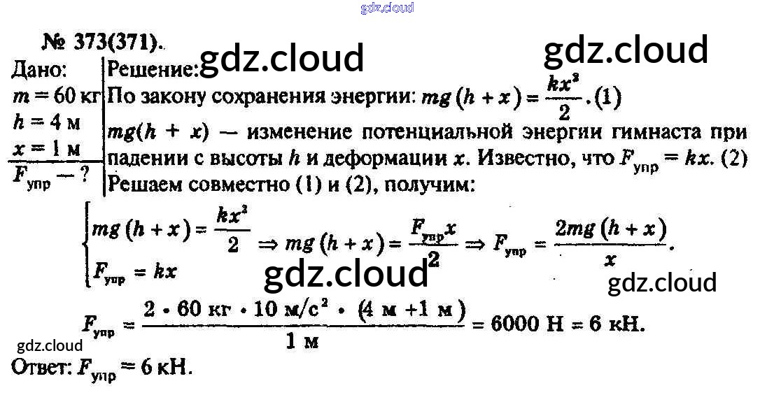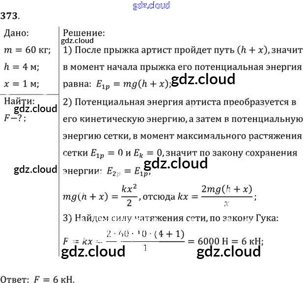 Ответ на задание 373 Задачник Физика за 10, 11 (десятый, одиннадцатый) класс Рымкевич УМК 2013