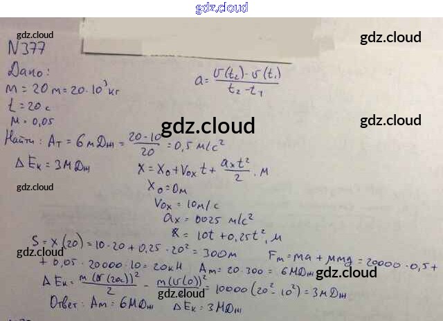 Ответ на задание 377 Задачник Физика за 10, 11 (десятый, одиннадцатый) класс Рымкевич УМК 2013