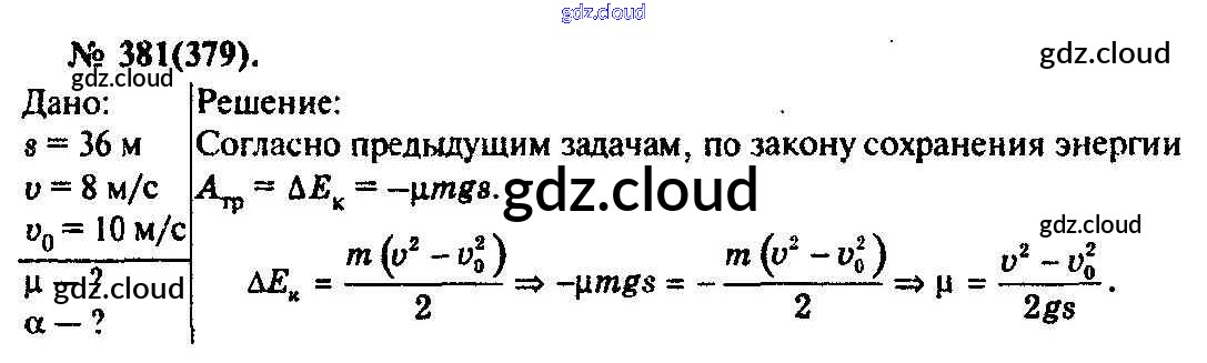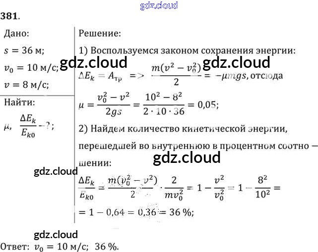 Ответ на задание 381 Задачник Физика за 10, 11 (десятый, одиннадцатый) класс Рымкевич УМК 2013