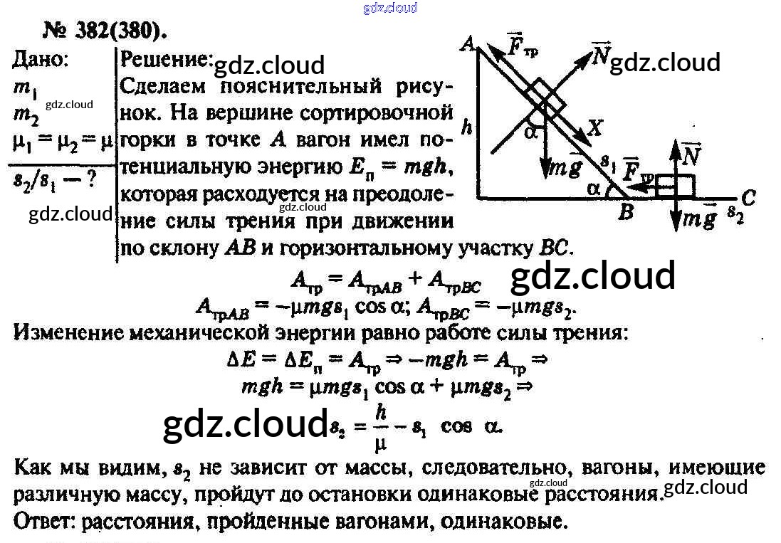 Ответ на задание 382 Задачник Физика за 10, 11 (десятый, одиннадцатый) класс Рымкевич УМК 2013